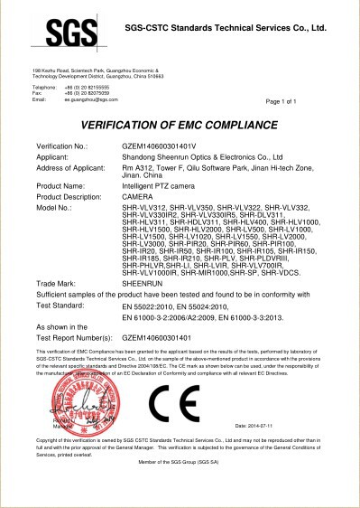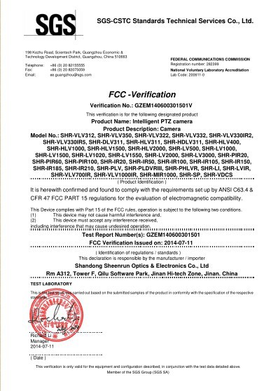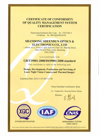 Sync Zoom Laser Night Vision Camera Certificate