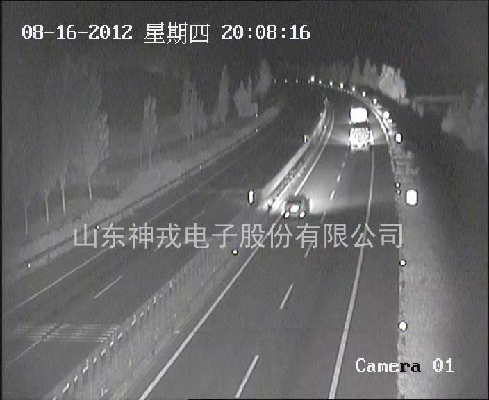 高速交通視頻監控系統包括前端夜視儀、事件檢測服務器、事件管理服務器和視頻管理系統。前端夜視儀可由激光夜視儀、紅外熱成像夜視儀單獨或組合構成,解決了高速公路晝夜連續監控的難題,在煙、霧、雨、雪等惡劣環境下,仍可提供正常的圖像,真正實現了全天候的視頻監控。事件檢測服務器采用了自身的運動目標跟蹤與定位技術,不但對高速公路上行駛的所有汽車進行跟蹤,記錄行駛軌跡,而且還可以對進入高速公路的所有運動目標,如非法進入的人員進行跟蹤確認,判斷行為,根據設定的規則,觸發報警。事件管理服務器負責所有事件的存儲、調閱、分析和報警觸發、通知、聯動。視頻管理系統主要負責設備管理、用戶管理、視頻瀏覽、錄像、流媒體轉發、解碼上墻等,同時兼有交通流量、密度統計分析功能。
