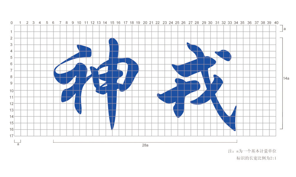 中文標志長和寬的比例為2:1;英文標志長和寬的比例為3:1。