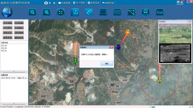 電子地圖的管理及基本操作、設(shè)備安裝點(diǎn)的管理和配置、火源位置的確認(rèn)及顯示、火災(zāi)蔓延趨勢(shì)的分析,滅火資源管理、地圖圖層管理、地圖標(biāo)繪、最佳撲火路徑、災(zāi)損評(píng)估、云臺(tái)控制、設(shè)備定位及地圖定位等功能,并配合應(yīng)急指揮服務(wù)器完成火災(zāi)的撲救指揮等。