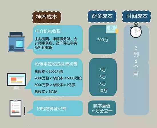 對于企業來說,一旦申請掛牌獲得備案函,就大大增加了獲得銀行貸款的概率,即股份可用來質押貸款。此外,也會有中介機構接洽希望參與下一輪的定向增發。掛牌新三板能為企業發展帶來名利雙收的效應,怪不得掛牌數量節節攀升。那企業家們不禁要問,掛牌要花多少錢?