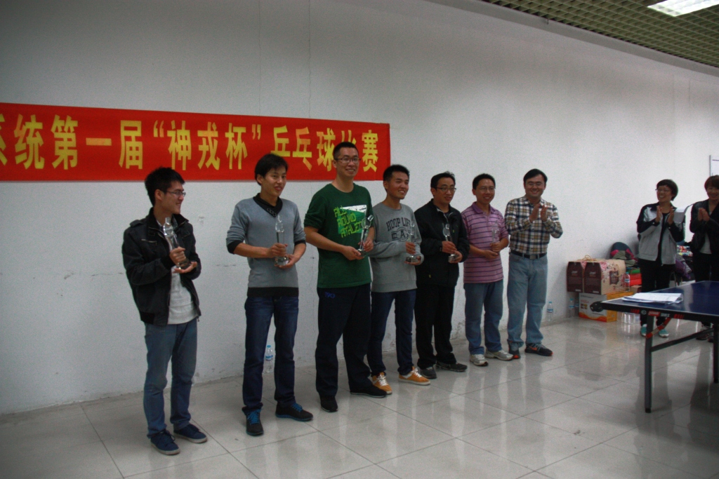 在團體比賽中,飛越技術中心隊獲得第一名,騰越銷售中心隊獲得第二名,神戎技術中心隊獲得第三名,神戎進出口中心隊獲得第四名,飛越制造中心隊獲得第五名,神戎制造中心隊獲得第六名。在女子單打表演賽中,來自飛越機電田海霞奪得冠軍,神戎公司費玲獲得亞軍;在男子單打表演賽中,飛越機電王連文奪得冠軍,飛越機電的付曰浩奪得亞軍,神戎公司的張棟奪得季軍,飛越機電張鐵勝、神戎公司李明與飛越機電陳永星在男子單打表演賽中也取得了不錯的成績,分別獲得男單第四名、第五名與第六名。比賽后,公司董事長鄒海濤為各位獲獎者頒發(fā)了獎品與獎杯,并表示熱烈的祝賀。