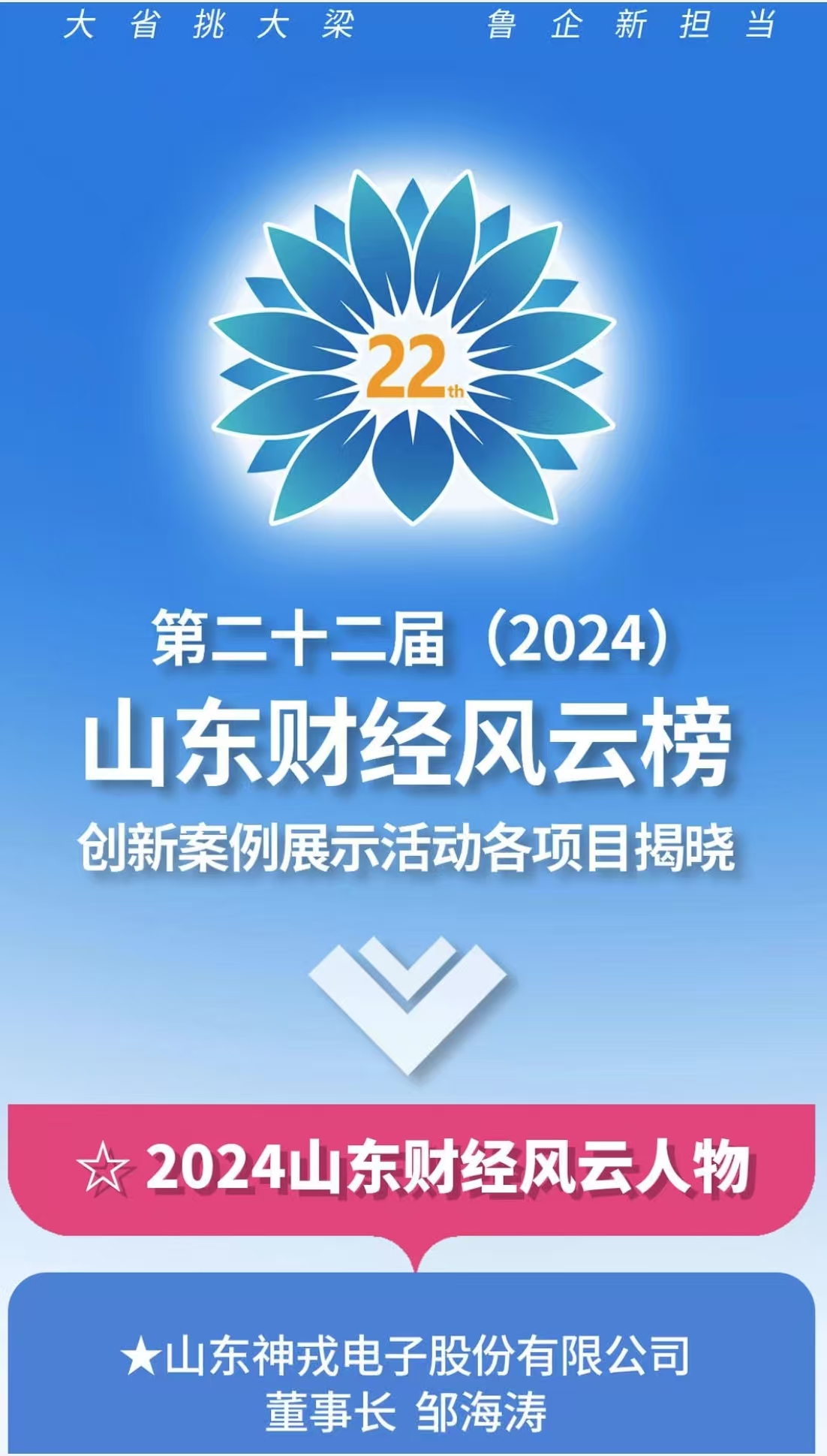 鄒海濤董事長榮獲“第二十二屆(2024)山東財經風云人物”
